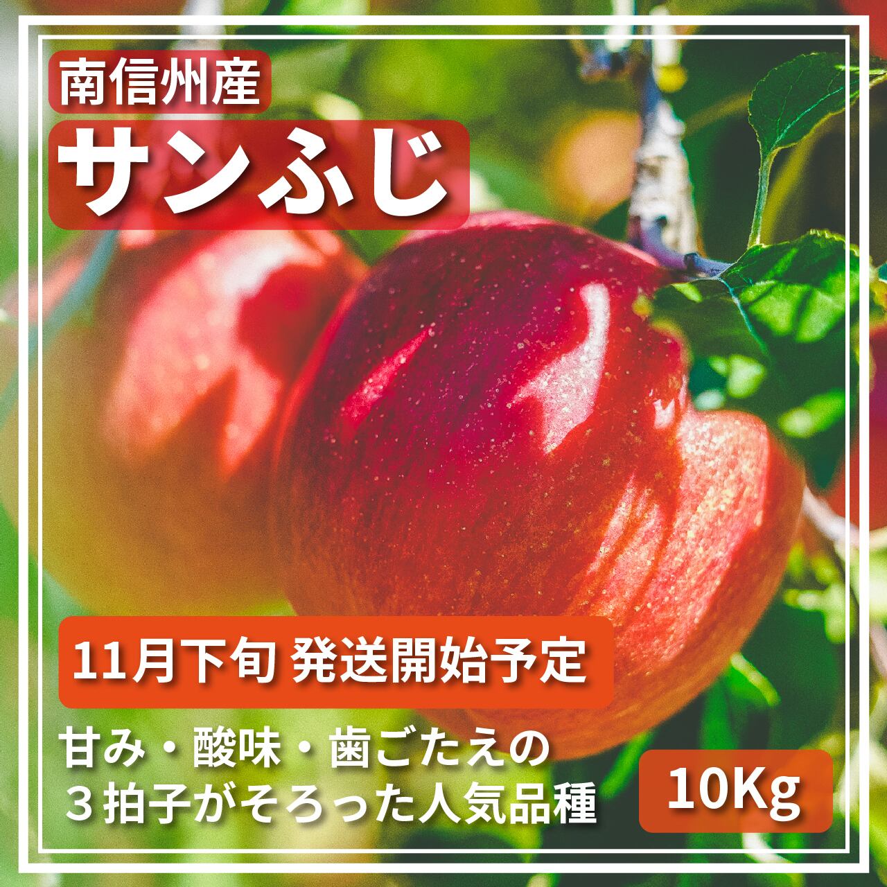 「サンふじ」は濃厚な果汁で甘味が強く、蜜も入りやすい貯蔵性に優れた人気のりんごです。昔からたくさんの人に親しまれてきました。蜜の入った真っ赤なサンふじは見た目も味も最高です。南信州で育った、甘みがぎっしり詰まった完熟サンふじをお楽しみ下さい。お歳暮、ご家庭用どちらでもお使いいただけます。